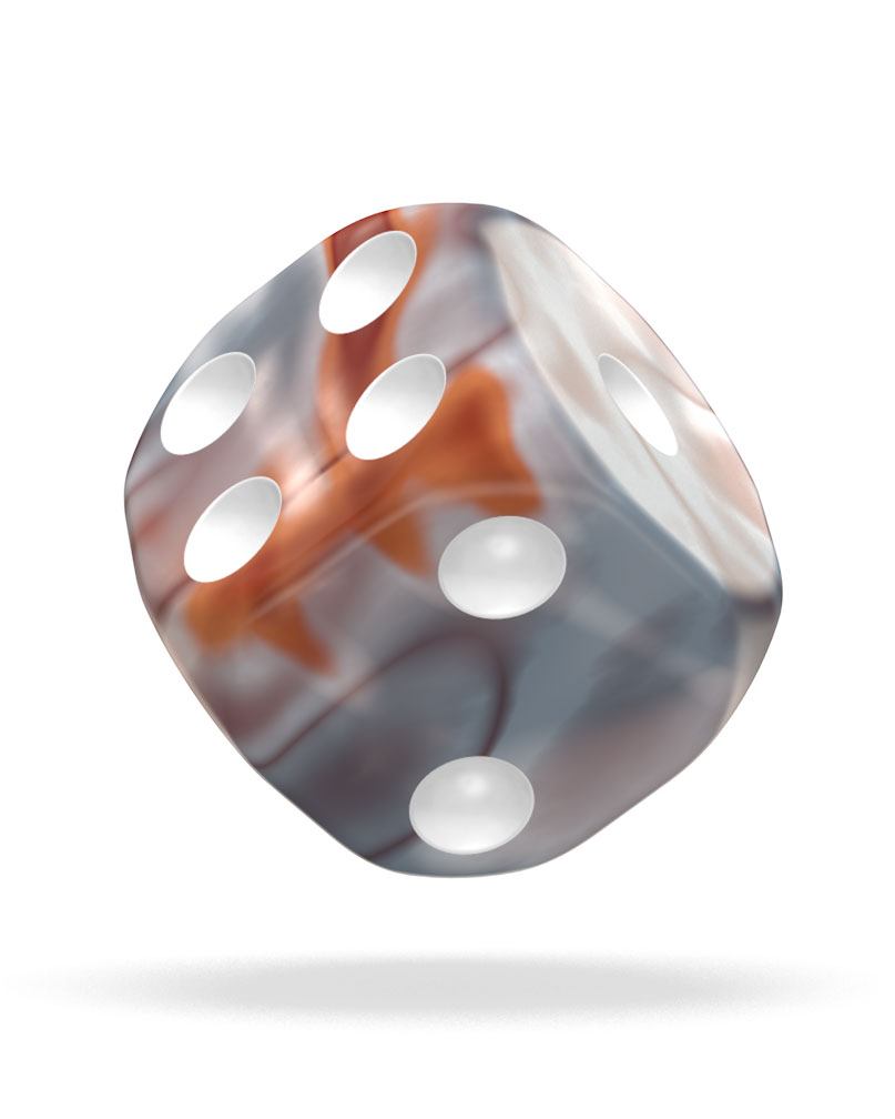 Two colours melt and become one, creating a beautiful, harmonious result which reminds us of precious stones and gems. These dice could maybe double as gift for your granny's 70th birthday!