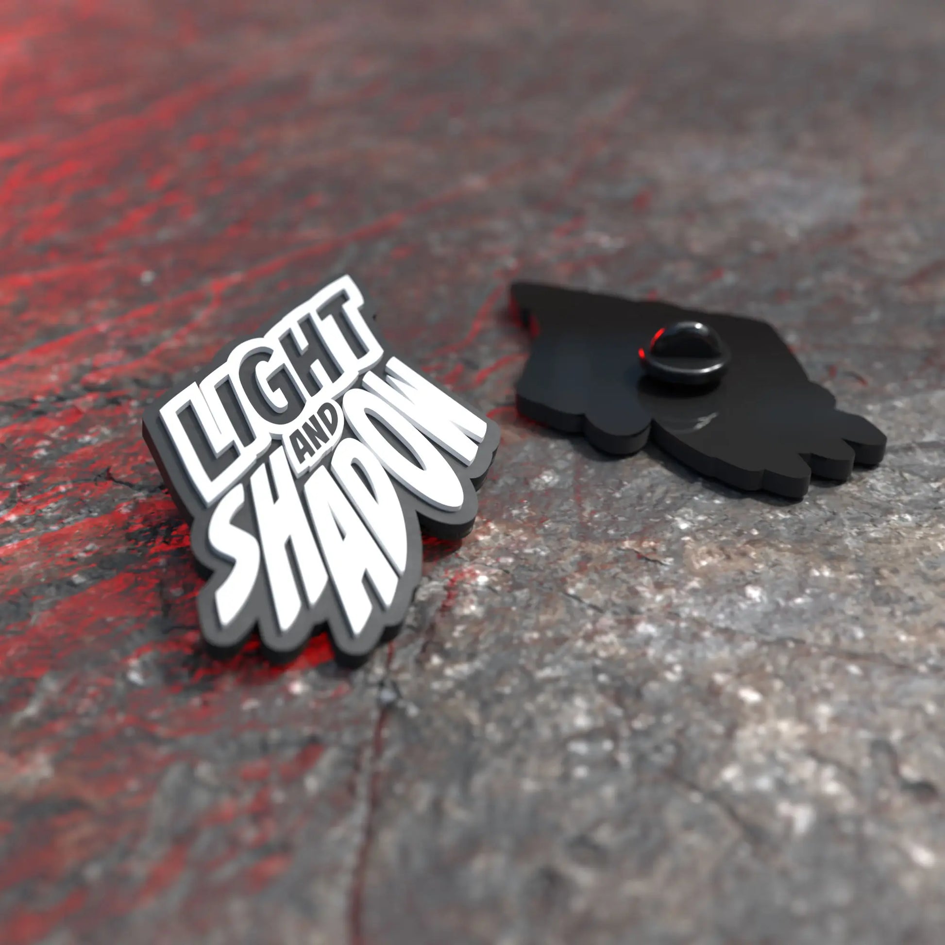Light & Shadow soft rubber pin with black silicone protective backing.