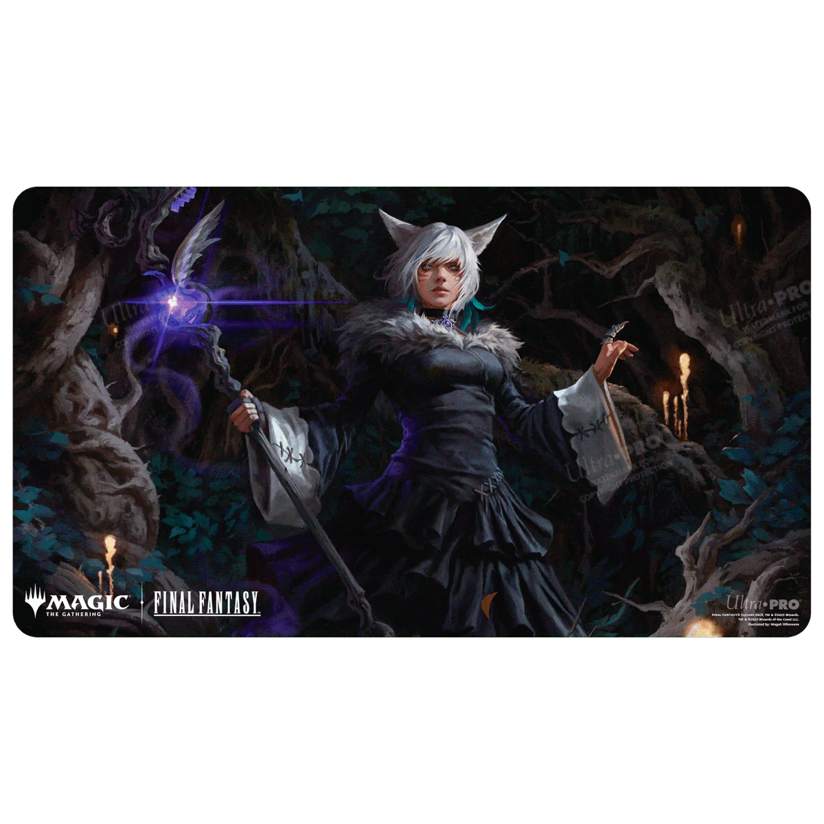 Playmats featuring popular Magic: The Gathering(R) --- FINAL FANTASY artwork. Made with a soft fabric top to reduce damage to cards during play and a non-slip rubber backing to keep the playmat from shifting during use, playmats enhance the gameplay experience. With dimensions of approximately 24 in. x 13.5 in., a playmat also makes an excellent oversize mousepad for home or office. Officially licensed Playmat for Magic: The Gathering(R) --- FINAL FANTASY Features exclusive artwork from Magic: The Gathering(R) --- FINAL FANTASY Measures approximately 24 in. x 13.5 in. and lies flat Soft fabric top helps protect cards during gameplay Non-slip rubber backing keeps the playmat from shifting during use